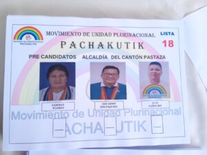 A la Concejalía Rural: Soraya Gualinga 325 votos, Luis Kuash  182 votos, Jenny Moncayo 384 votos, Washington Salazar 171 votos y Melania Gayas 227.