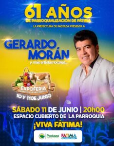 La Prefectura de Pastaza te invita a celebrar del 3 al 14 de junio las fiestas de parroquialización de Fátima, ven con tu familia y amigos y celebremos juntos este aniversario con el sello y calidad de la Prefectura de Pastaza.
