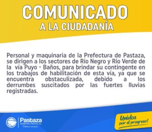 Brindamos nuestro contingente para realizar los trabajos de habilitación de la vía Puyo- Baños.