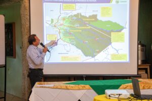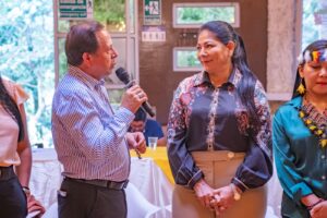 El Prefecto Jaime Guevara en su intervenciรณn compartiรณ con los presentes la Transversalizaciรณn del Enfoque de Gรฉnero en el Marco REDD+ de Pastaza, documento que agrupa polรญticas ambientales y consolidaciรณn de la gobernanza ambiental con participaciรณn activa e igualitaria de mujeres, hombres y jรณvenes.