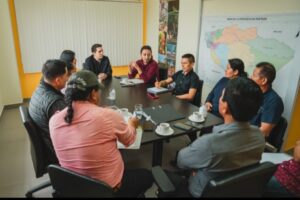 El Prefecto Andrรฉ Granda se reuniรณ con Silvia Santi, Secretaria Tรฉcnica de la STCTEA y los dirigentes de las comunidades que estรกn en la vรญa el Triunfo – Villano-Paparawa, para analizar el proceso de contrataciรณn de asfaltado de 10 kilรณmetros de la vรญa, desde la comunidad Ilipi – Yanapuma.