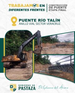 #Etapa Final puente sobre río Talín Parroquia #Veracruz Anillo vial 22 de abril – Juan Benigno Vela #ElGobiernoDelÁnimo Navegación de entradas Gobierno de Pastaza transparenta su gestión GOBIERNO DE PASTAZA A PROVEEDORES