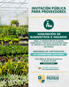 El Gobierno de Pastaza, invita a los proveedores a particpar del proceso.