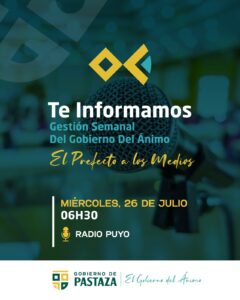 Maรฑana, miรฉrcoles 26 de julio, TE INFORMAMOS se generarรก en formato entrevista desde RADIO PUYO 06:30 am con Carlos Padilla โ