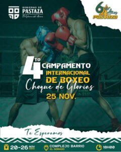 Este fin de semana !!! Pastaza lo tiene todo !!! #ElGobiernodelÁnimo Navegación de entradas Todo listo para el Cuarto Campamento de Boxeo “Choque de Glorias” este sábado 25 a las 19H00. Nuevo proyecto 🚜💪🤝 en la Parroquia Diez de Agosto #ElGobiernoDelÁnimo