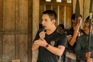 El prefecto de Pastaza André Granda visitó la comunidad kichwa de Ishpingo, la cual se encuentra a orillas del río Bobonaza; para llegar se debe caminar por una trocha durante más de una hora.