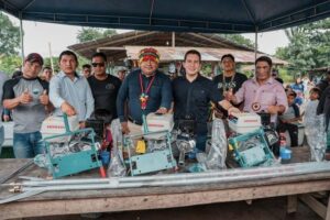 En la comunidad Iwia, de la Parroquia Simón Bolívar, el prefecto de Pastaza, André Granda hizo la entrega de tres canoas de fibra de vidrio de 10 metros de largo con motor peque peque de 15 HP, que fortalecerán el transporte y la movilidad fluvial y ayudará al fomento de las actividades productivas, turísticas, comerciales y sociales de las comunidades de: Iwia, Tuna, y Shaimi. 👏