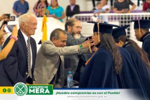 El alcalde Gustavo Silva, compartió esa alegría y felicitó a los nuevos bachilleres, motivando a los jóvenes a continuar por el buen camino, así mismo ratificó su compromiso de apoyo y trabajo en favor de la educación del cantón Mera.