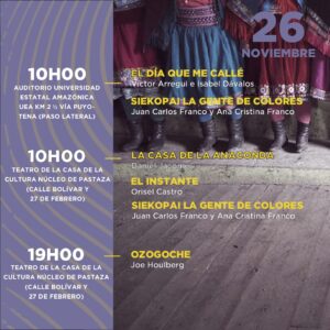 El Festival de Cine Kunturñawi, llega a Pastaza con lo mejor del cine ecuatoriano 😊🎬, ¡ven y disfruta de funciones totalmente gratuitas de los mejores cortometrajes y largometrajes del país 🎞️!