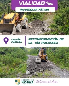 El Gobierno de Pastaza concluyó la reconformación de la vía en Pucayacu, parroquia Fátima.