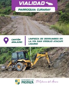 #Vialidad Atendemos los deslizamientos en la Vía San Virgilio Atacapi-Liquino, Parroquia Curaray, Cantón Arajuno.