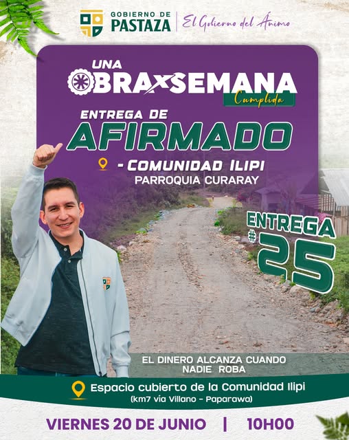 Con hechos concretos, el Gobierno de Pastaza avanza firme junto al liderazgo del joven prefecto Andrรฉ Granda.