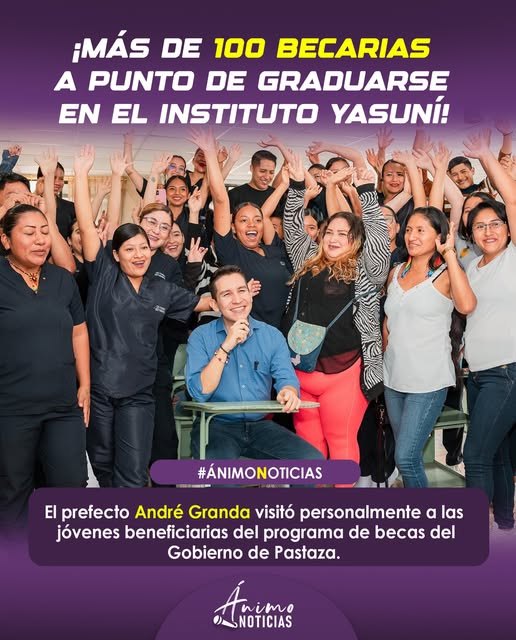 El prefecto Andrรฉ Granda visitรณ a mรกs de 100 becarias del Instituto Superior Yasunรญ que estรกn a punto de graduarse, como parte del recorrido de seguimiento al programa provincial de becas de tercer y cuarto nivel que impulsa el Gobierno del รnimo.
