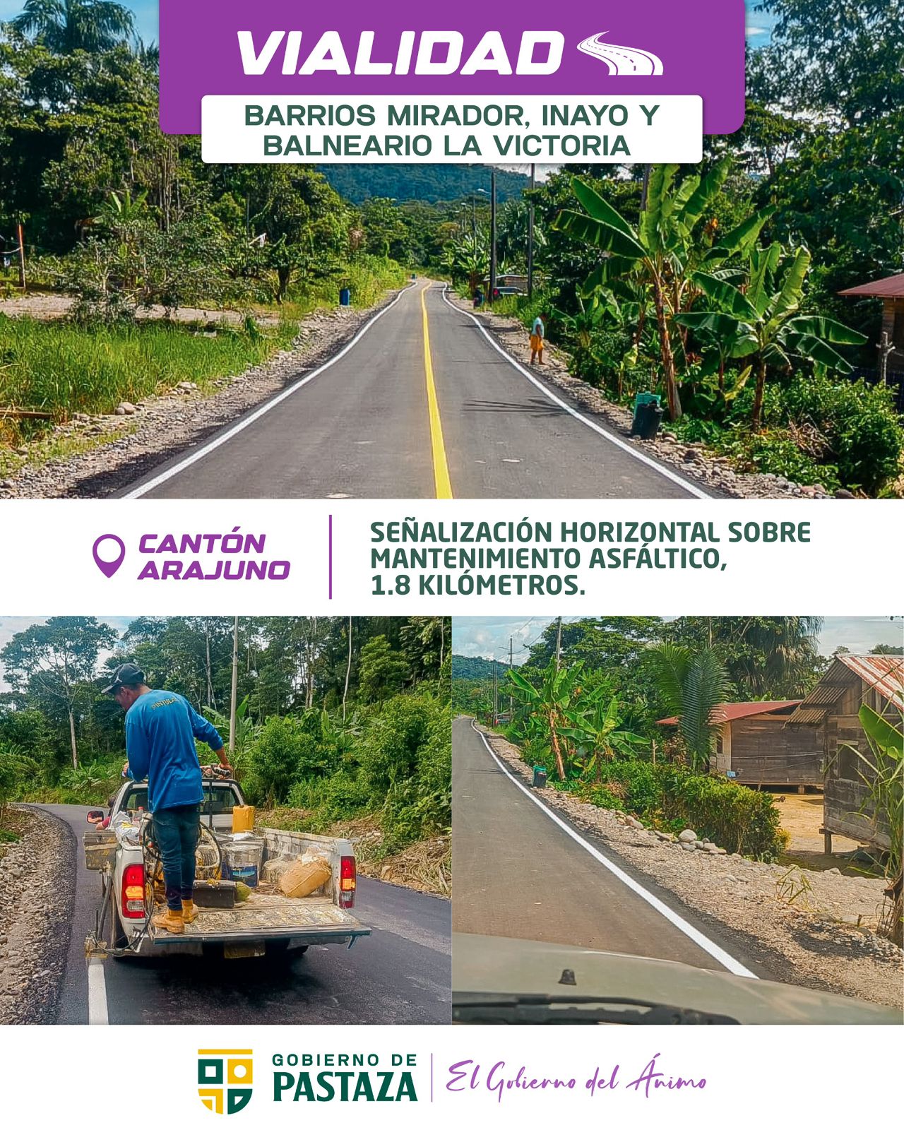 En Arajuno ✅ según planificación , señalizamos sobre el mantenimiento asfáltico de 1,8km … Navegación de entradas Entrada anterior Entrada siguiente