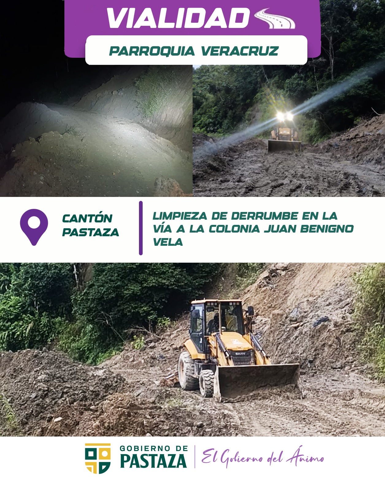๐จ ยกNo importa la hora la vรญa estรก habilitada gracias al equipo de emergencia de obras pรบblicas de Pastaza! ๐