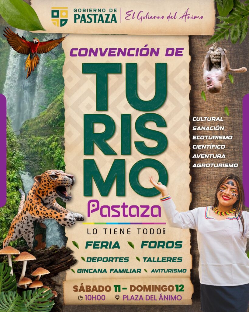Este sábado 11 y domingo 12 de octubre disfruta de la Convención de Turismo “Pastaza lo tiene todo”, un evento que celebra la naturaleza, la ciencia y la cultura amazónica.