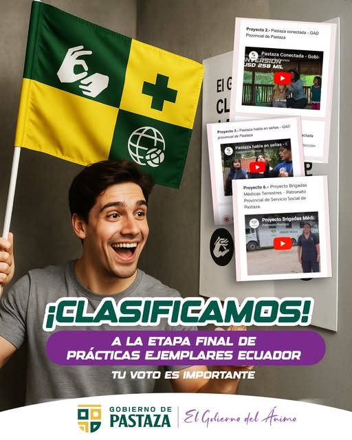 El Gobierno de Pastaza ha sido seleccionado para avanzar a la siguiente etapa del programa Prรกcticas Ejemplares Ecuador, una iniciativa que reconoce los proyectos innovadores y comprometidos con el bienestar ciudadano.