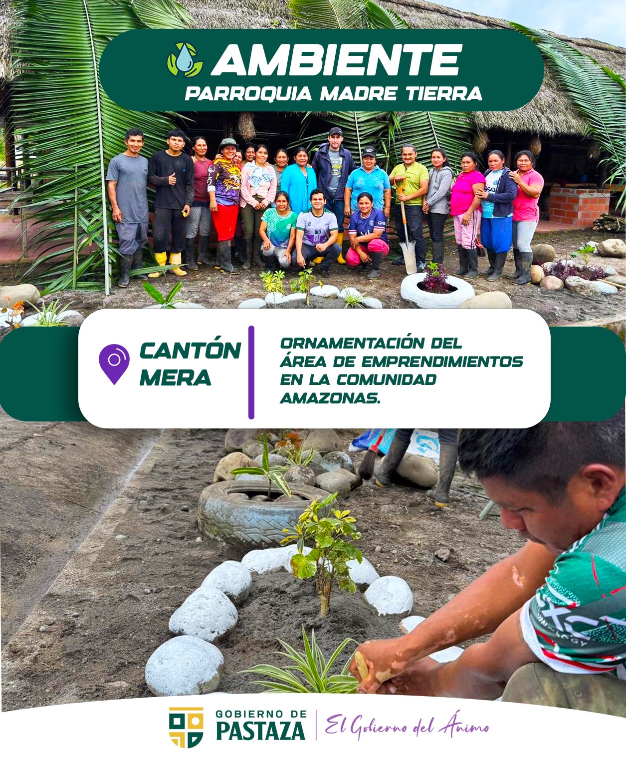 En el marco del proyecto “Producción Forestal con Fines de Restauración y Conservación”, el Gobierno de Pastaza, a través de la Dirección de Gestión Ambiental, realizó una minga comunitaria para la ornamentación del área destinada a los emprendimientos en la comunidad de Amazonas, perteneciente a la Comuna Ancestral San Jacinto del Pindo.