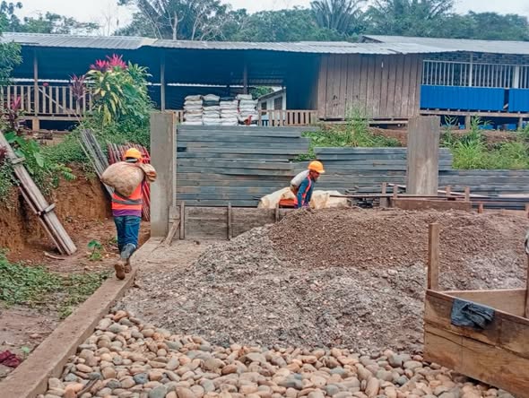 Sin mirar las dificultades de construir en media selva el prefecto André Granda cumple su palabra, un espacio digno donde nuestra gente pueda reunirse.